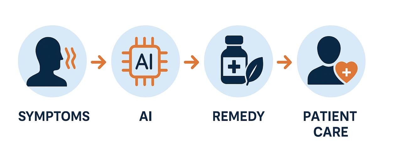 AI directly processes patient's symptoms (exact language or expressions) and instantly suggests the most accurate remedies. |